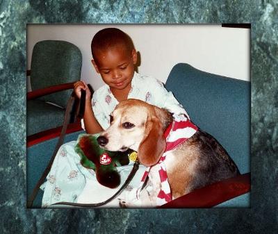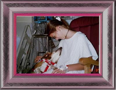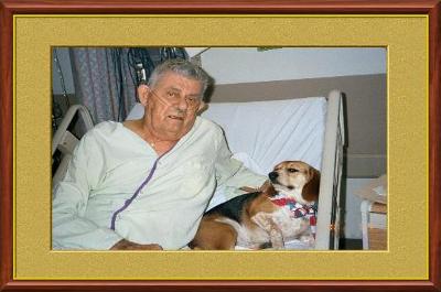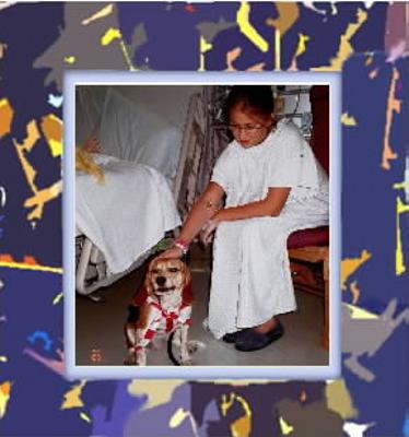 The next day, we took one of BayLees cards to him and he seemed to be doing alittle better. His family was still there. They were telling me how they thought the visits were helping. I was late the following day. He was asking where his Beagle was!! Showing the nurses the card and asking for BayLee. His face really lit up when he saw her! He was doing 100% better. By the end of the week he was in a regular ward and soon heading home. |